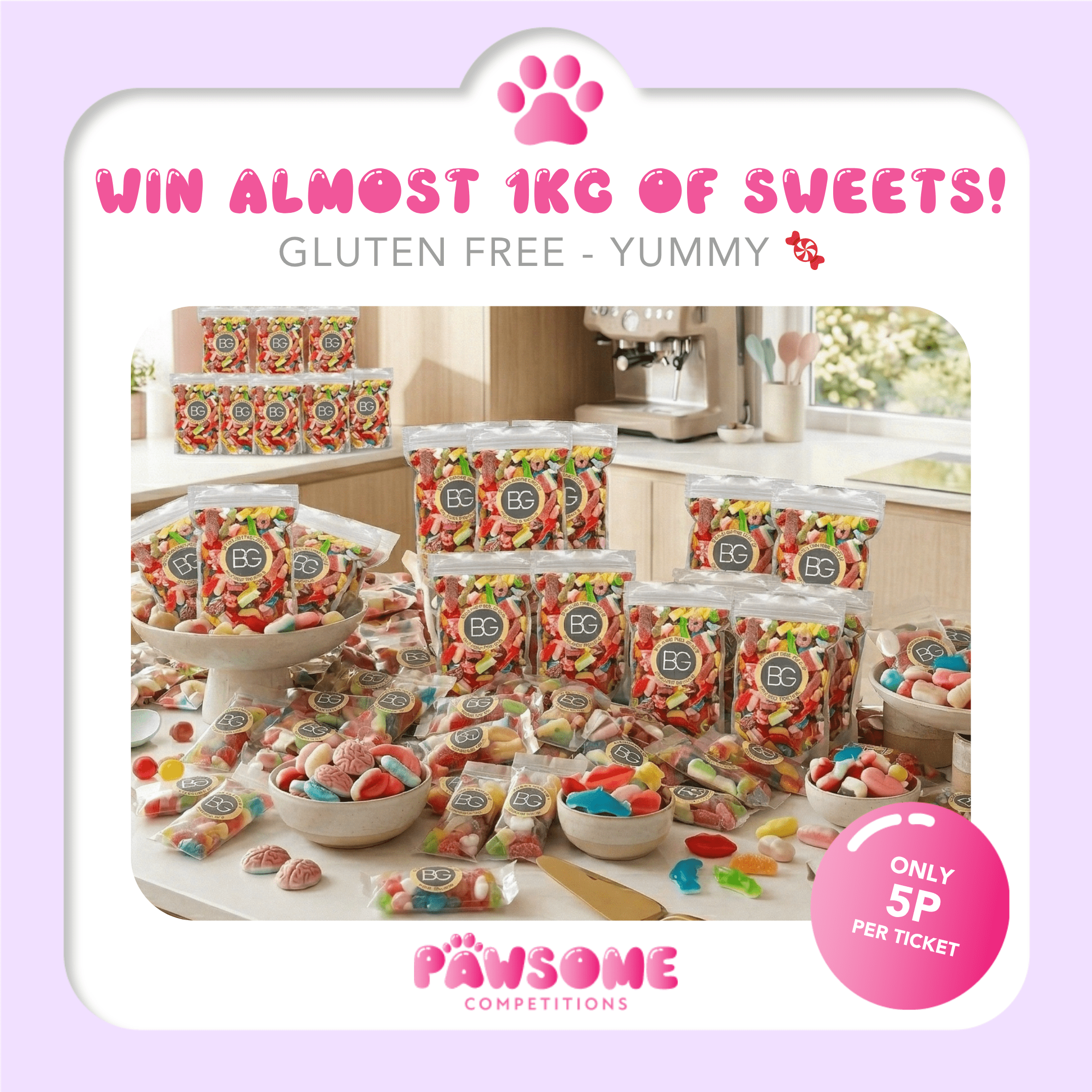 The live draw will take place on the Pawsome Competitions Limited Facebook page using Google’s random number generator to select the winning ticket number from all Entrants.