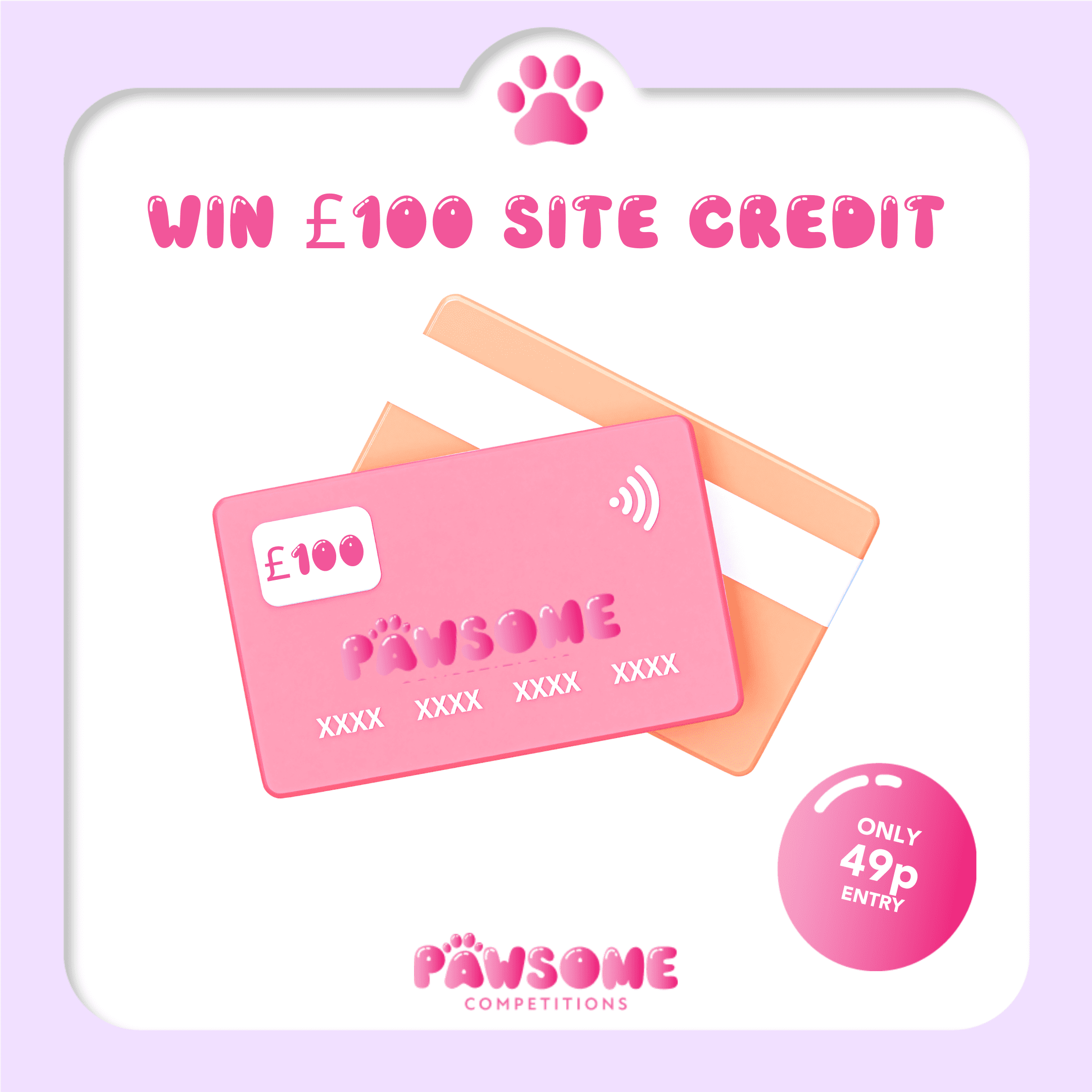 This prize is for £100 Pawsome Site Credit deposited straight into the winners Pawsome Wallet.