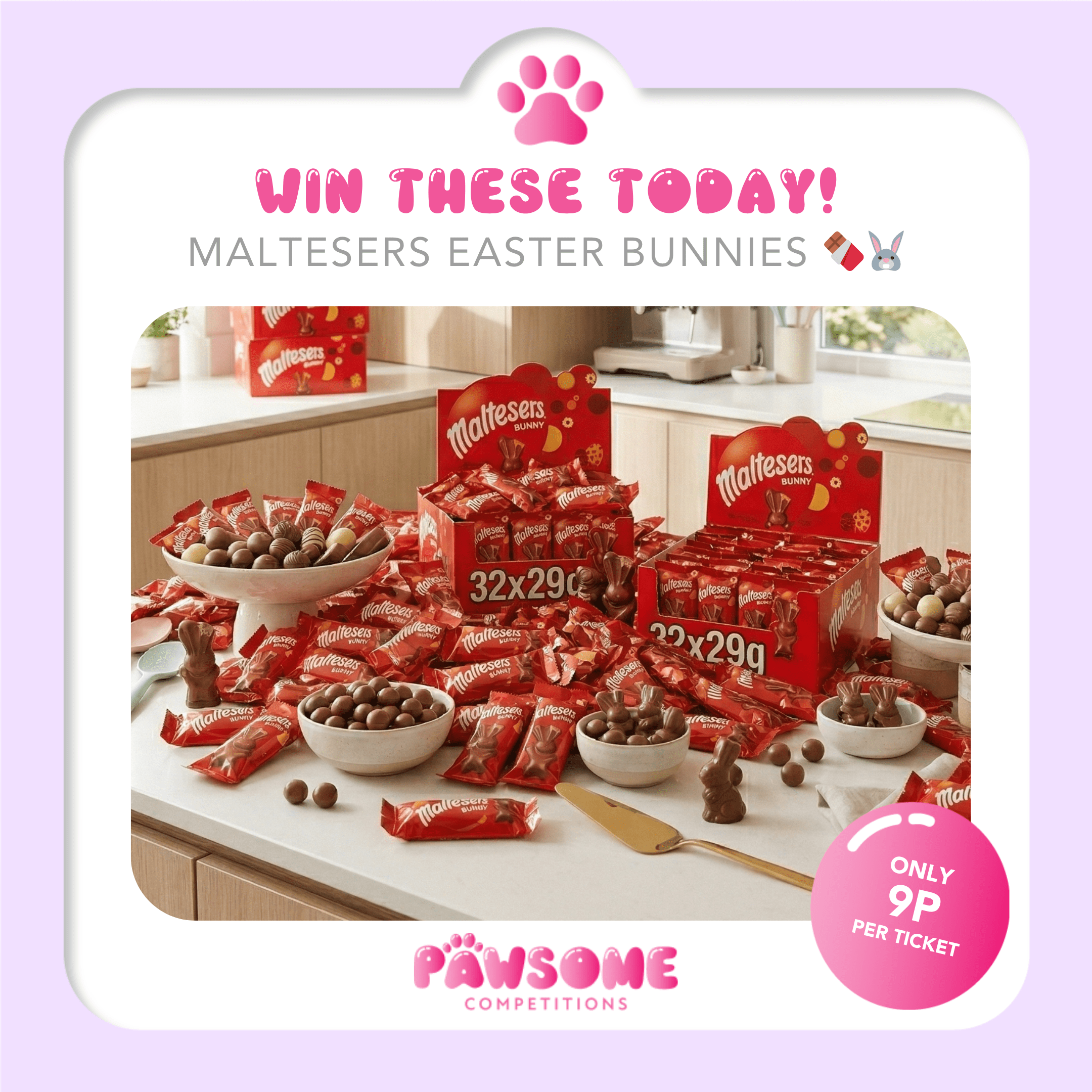 The live draw will take place on the Pawsome Competitions Limited Facebook page using Google’s random number generator to select the winning ticket number from all Entrants.